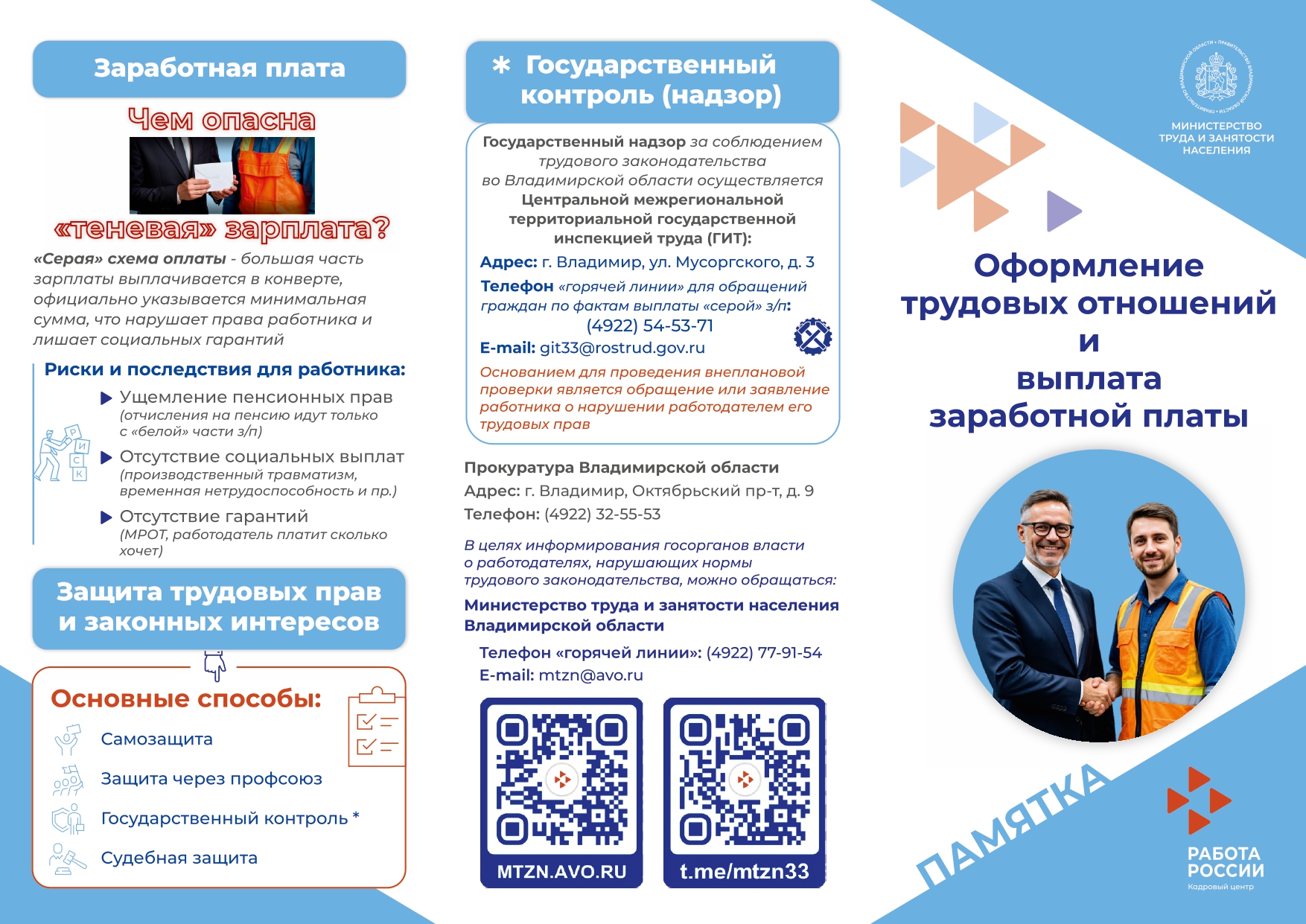 Также доводим до вашего сведения, что при администрации Владимирской области в Министерстве финансов открыта «горячая линия» - «Сообщите о «конвертных выплатах» заработной платы» по телефону 8 - 4922 - 32 - 65 - 00